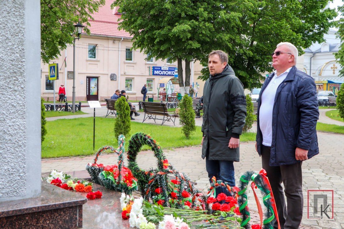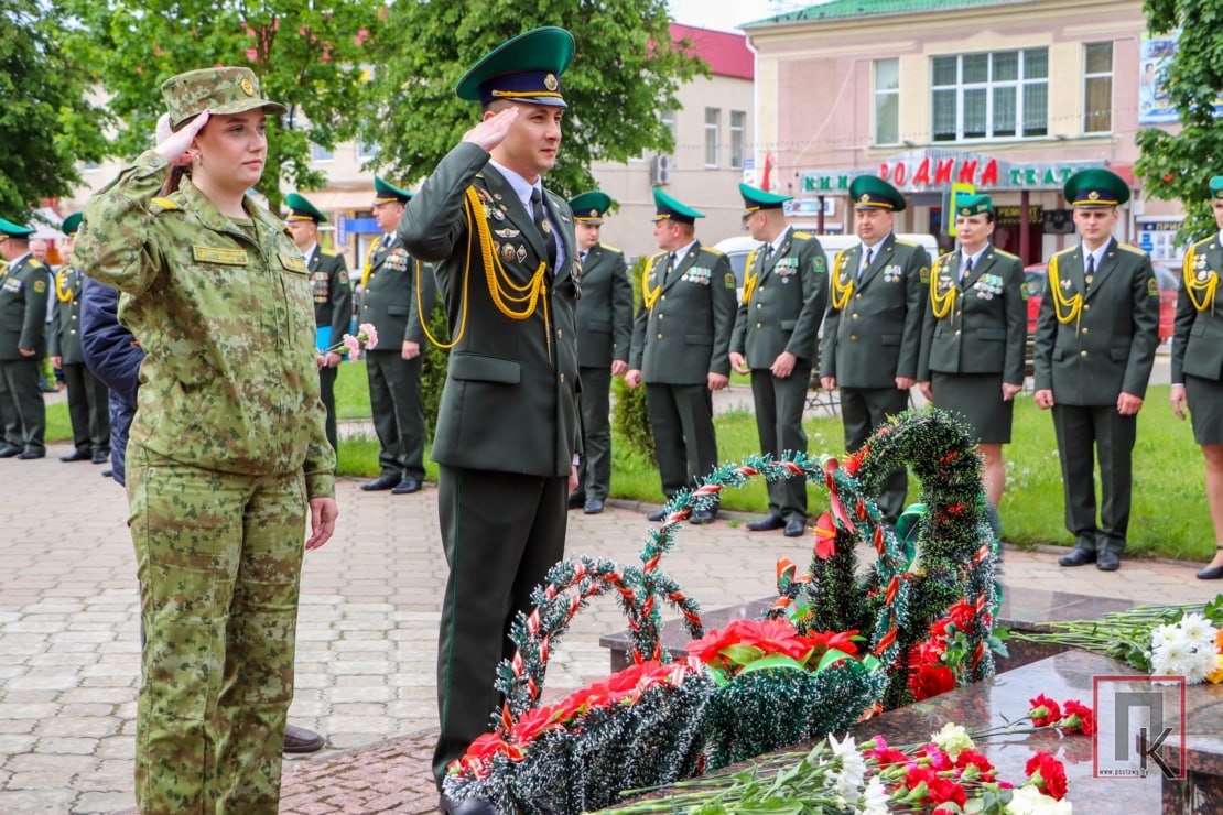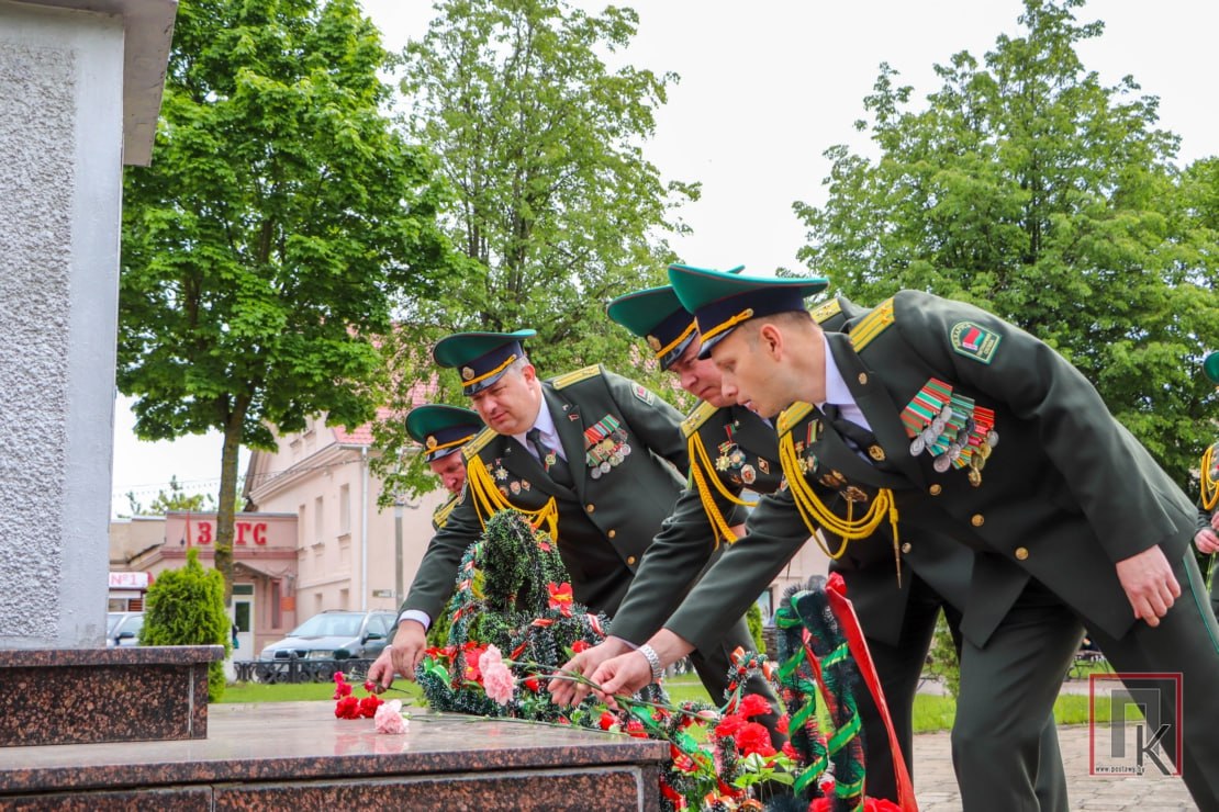 В знак искренней признательности всем освободителям нашей Родины от коричневой чумы, в том числе воинам-пограничникам, принявшим первый удар врага на границе Советского Союза, военнослужащие возложили цветы к памятнику погибшим в Великой Отечественной войне, расположенному на центральной площади в Поставах.